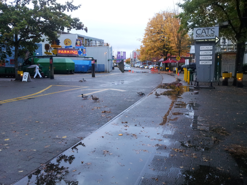 Birds on Granville Island just don’t give a duck. “Cars move for US!”