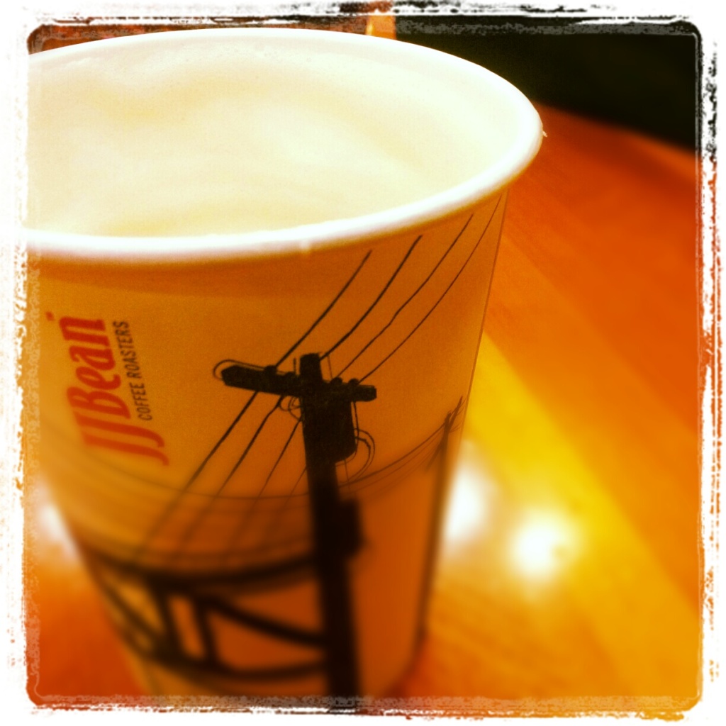 Before I headed down from the hotel towards the nearest coffee shop (which turned out to be closed), I got to meet Patrick Lane. He asked if I was coming along with mom and him in the car, to which I said no, I was going to write in a coffee shop. (Mom ended up giving him a copy of my poetry book glasstown, which was pretty exciting to hear.) Of course, it was raining, so I slogged through puddles to find Agro café. Turned out they weren’t open until 9am on Sundays, to which I may have uttered a string of expletives. So I continued on towards the Public Market, which also looked closed, but wasn’t. Google Local assured me that JJ Bean was open at 7am.
